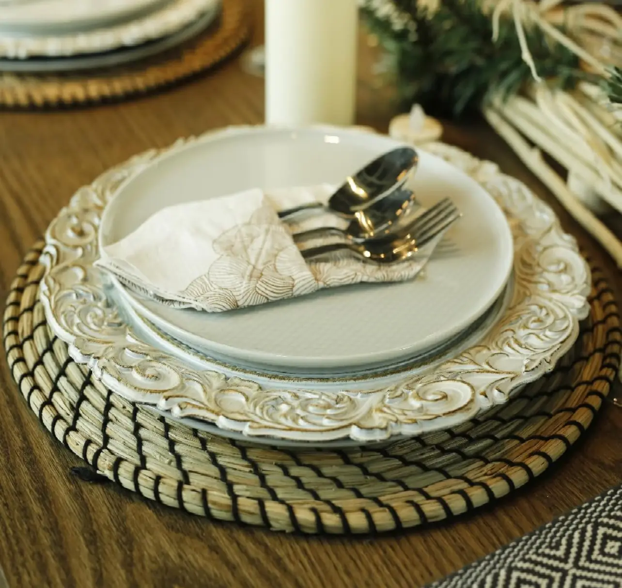 Presenting our Elegant Antique White 13-Inch Plastic Charger Plate, a sophisticated addition to your table decor. Crafted from durable plastic, this charger plate measures 13 inches in diameter, offering both style and functionality. Its antique white color, complemented by distressed markings and embossed edges, exudes timeless charm and elegance. This charger plate is designed to enhance your table setting, whether it’s for a formal dinner party or a casual gathering. Brighten up your table linens and accessories with this versatile piece, adding character and refinement to your contemporary decor.