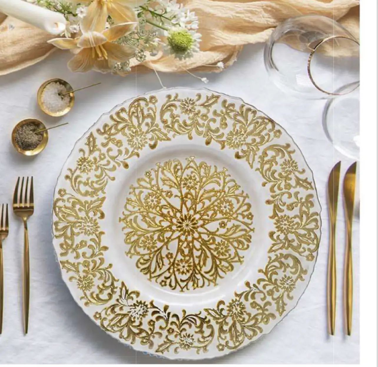 Enhance your dining experience with our exquisite Glass Charger Plate. Crafted with care, this plate boasts a stunning design featuring a hand-painted gold rim, adding a touch of elegance to any table setting. The plate measures 13 inches in diameter and comes in a beautiful white color with a high-gloss finish. Whether it’s for special occasions or everyday use, this decorative charger plate is sure to impress. Made from durable glass, it is both hand-wash and dishwasher safe, ensuring convenience and longevity.